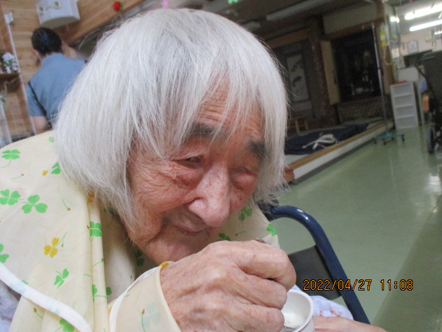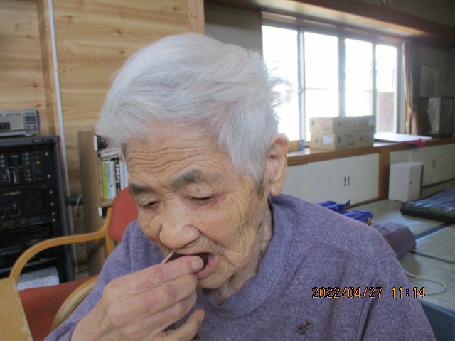 S様は入浴後、ご家族様から頂いた牛乳寒天を食べながら「さっぱりするねー」と美味しそうに話されていました!