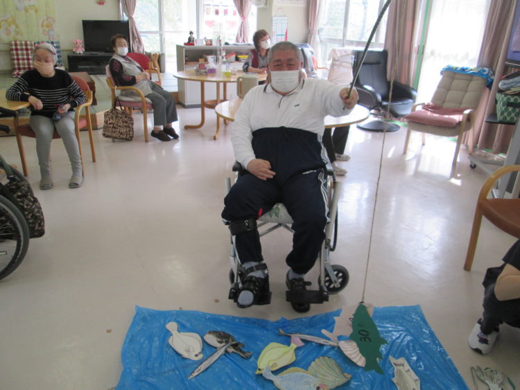 本日の午後のレクは魚釣りゲームを行いました~🐟