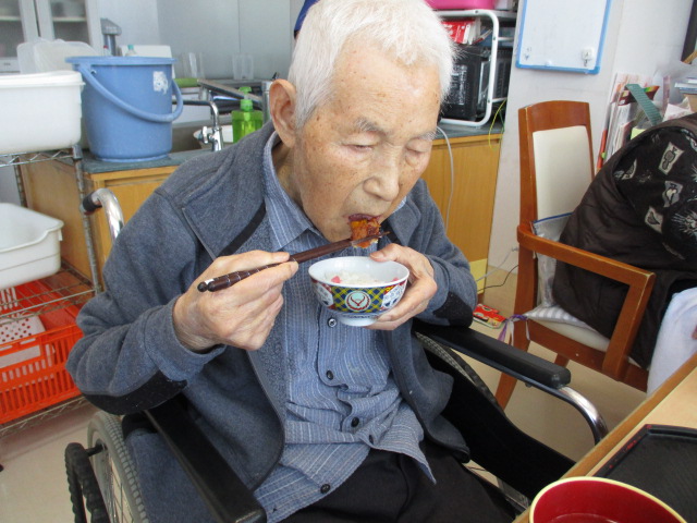 お客様との会話で好きな食べ物の話をしたところ、イカが好きなお客様がおり、今日はイカメンチですよと伝えると「まーそれだば好みだじゃ」と口元がにやけていました。また、他のお客様はイカメンチを食べた事がないとの事で「楽しみだ―」とおっしゃっており、昼食の際は「美味しい」と満足気に喜んで食べていました。