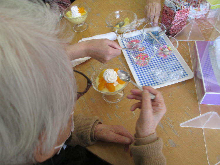 フルーチェの飾りつけをお願いすると、さすが女子です!