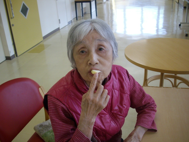 いつもはお客様それぞれ持参されているお菓子をお茶会の時間に提供しておりますが、今回は全員でリンゴをいただきました。