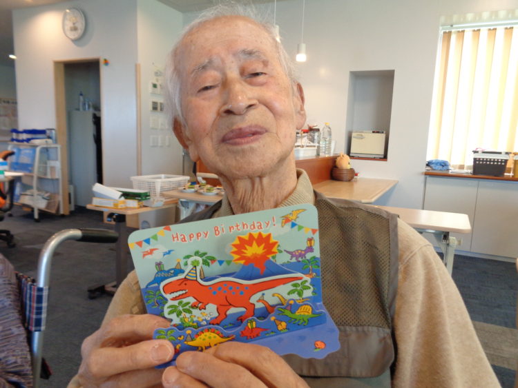 こちらのN様は利用者様や職員方に祝ってもらってニッコリ!バースデイカードをお部屋に大切に飾っていました!