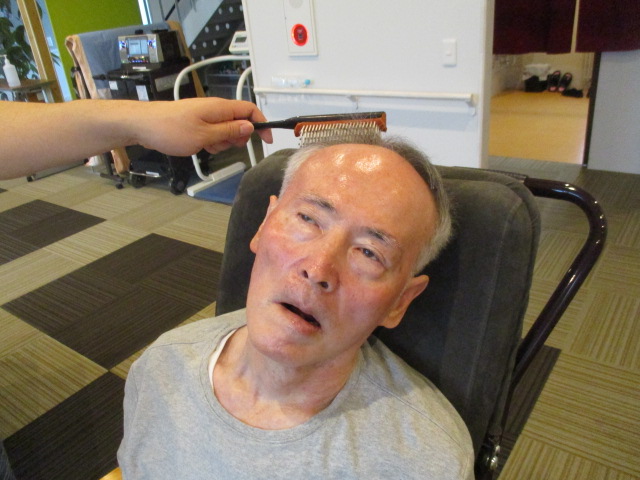上下肢運動の後、ブラッシングを行いました。とても気持ちよさそうな表情をしておりました。