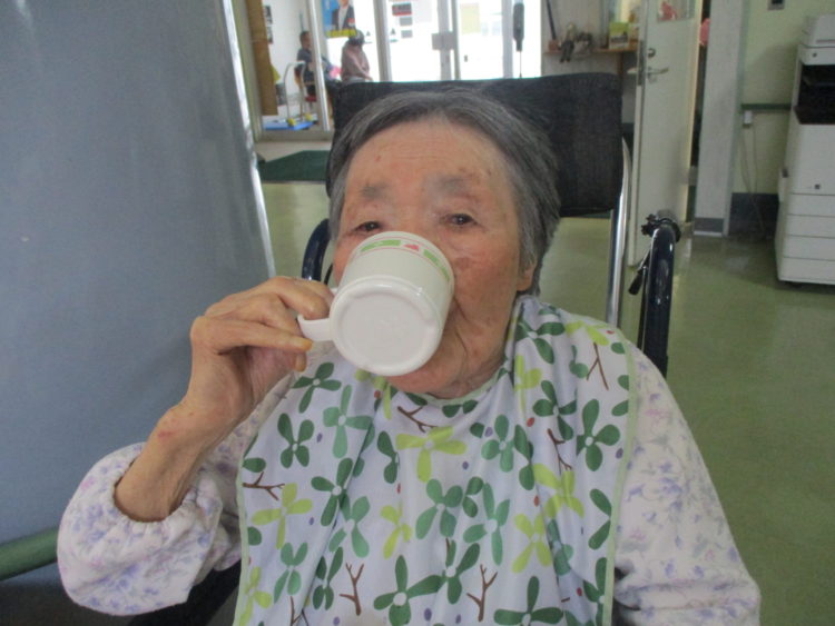 O様は職員が用意したジュースを一気飲みしておりました。飲んだ後は「あー、美味しかった」と話されておりました。