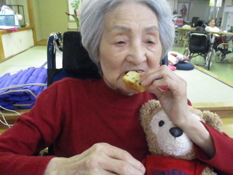 今日は、ご家族様が持ってきてくださったお菓子を美味しそうに召し上がっているお客様がいらっしゃったので、写真を撮らせて頂きました。