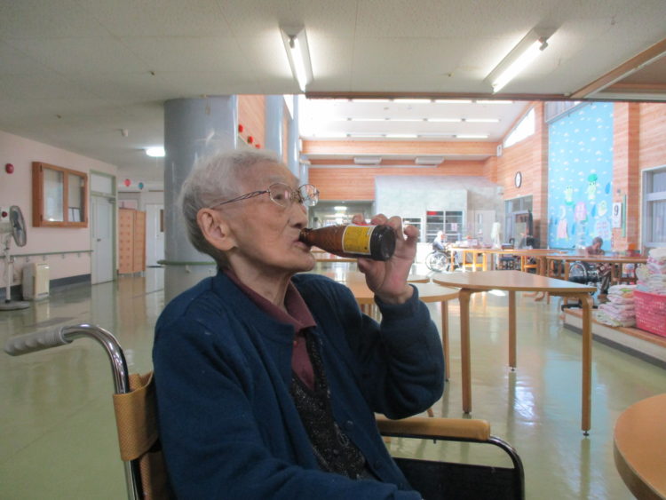 ご家族から頂いたようかんを美味しそうに召し上がっていますD様
