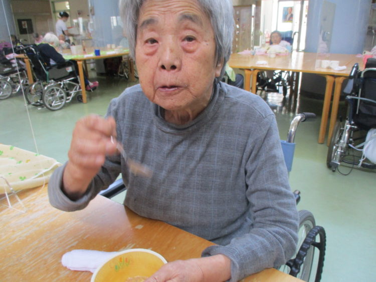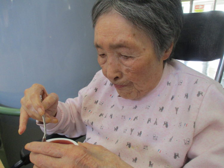 昼食前、眠そうにしていたO様!「ゼリー食べませんか?」と聞いてみると嬉しそうに「うん!」!