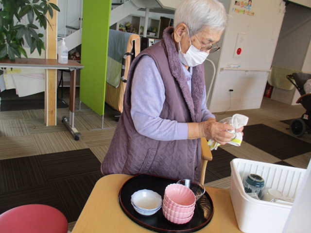 昼食後は、食器拭きをK様とT様にお願いをしました。
