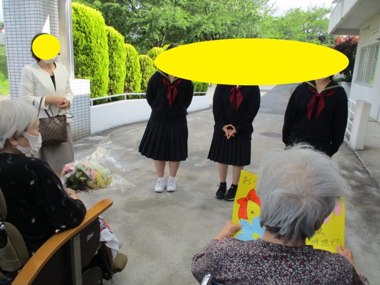 昨日は、聖愛高校の生徒さん方が来園され、花束とメッセージカードを頂きました。