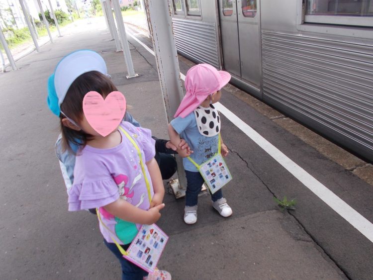 さて、山崎保育園では先週の晴れた日に遠足に行ってきました。その日は涼しい風が吹き、とても過ごしやすい遠足日和でした。今回の遠足では電車の駅のホームで電車見学をしました。ホームでの安全ルールを保育士から教えてもらったり、駅の看板の説明をしてもらったりしました。
