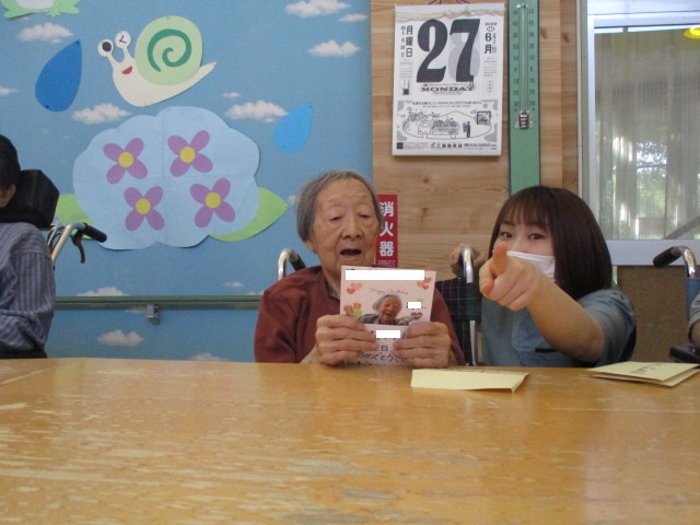 各居室担当が作成したバースデーカードをプレゼントし、皆様喜んでいました!