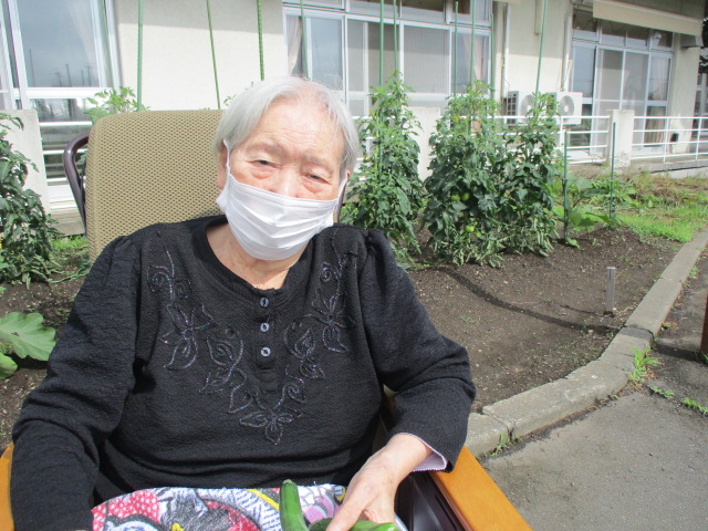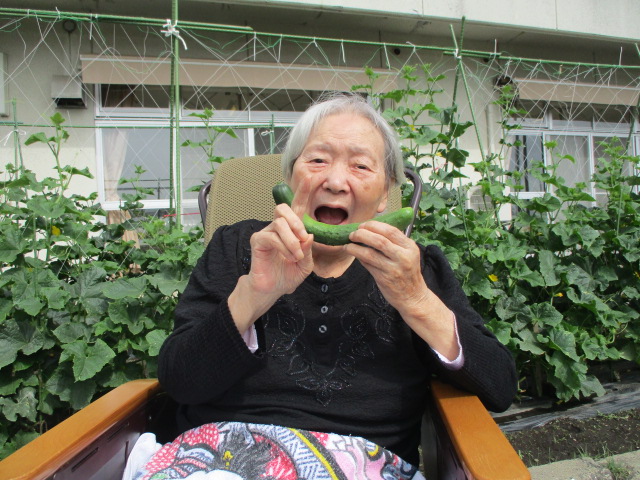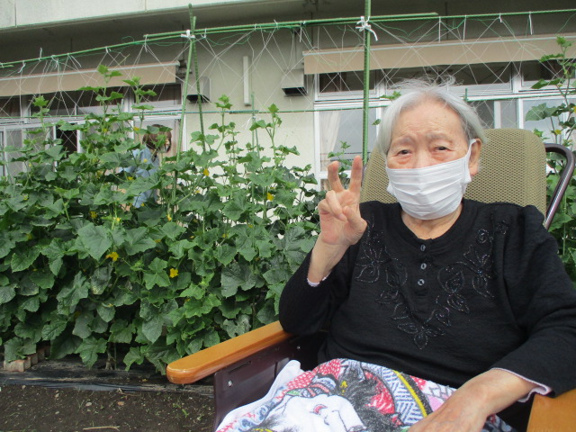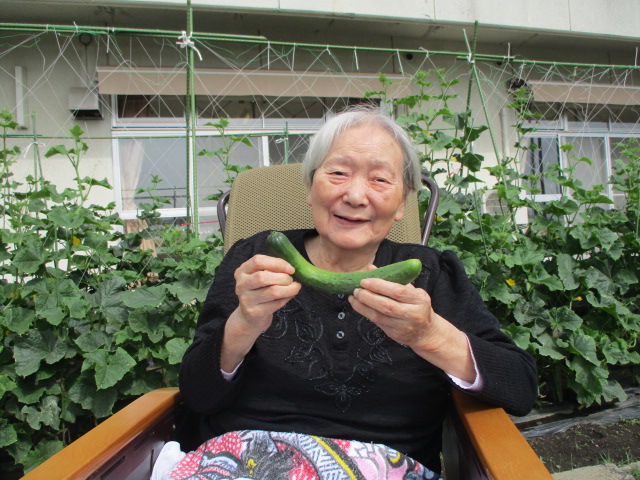 今日は朝ごはんを済ませた後、Y様とおうよう園の小さな畑できゅうりの収穫に行ってきました。