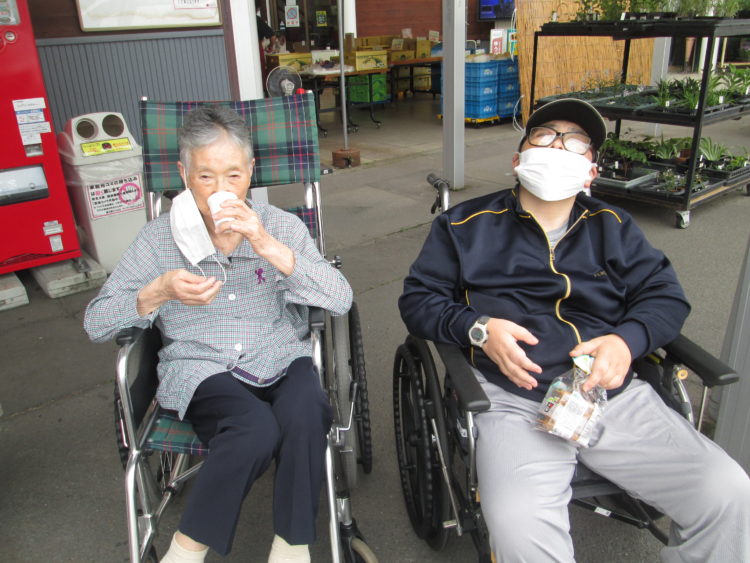 買い物後は、お外にある休憩所で水分補給をしてから帰って来ました。