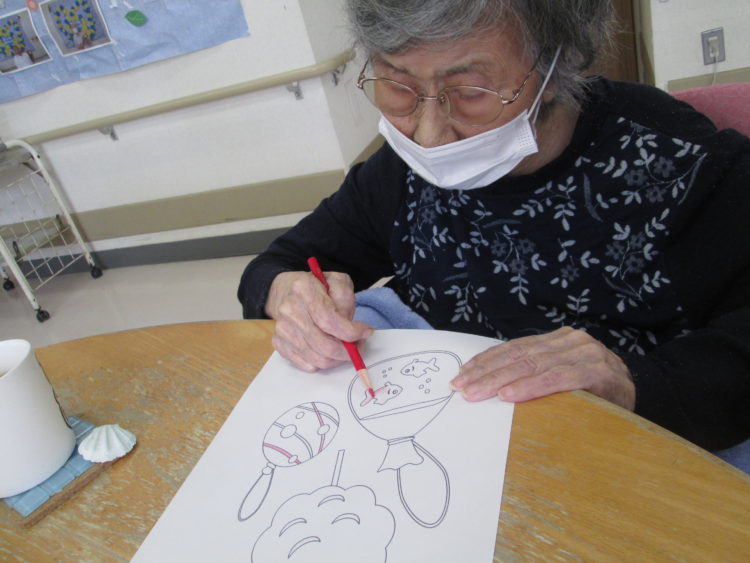 午後のレクは予定を変更し脳トレと塗り絵を行いました🎵