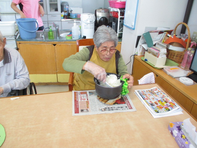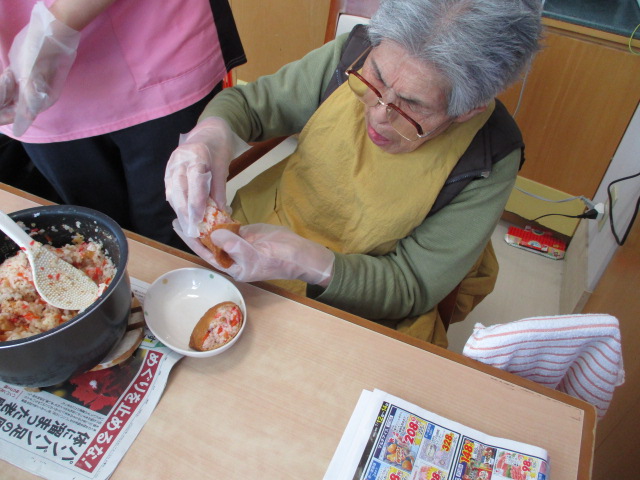 今日、ベルでは調理活動として、いなり寿司を作りました。