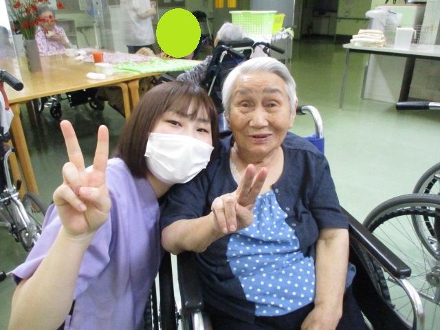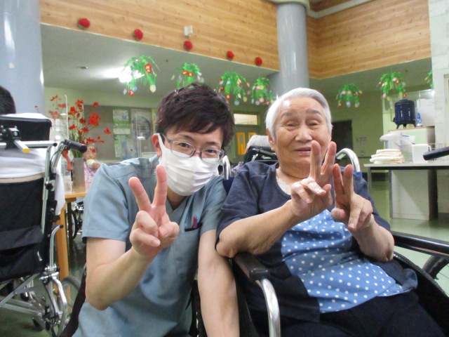 K介護士とS様です^^二人ともピースサインしてくれました♪