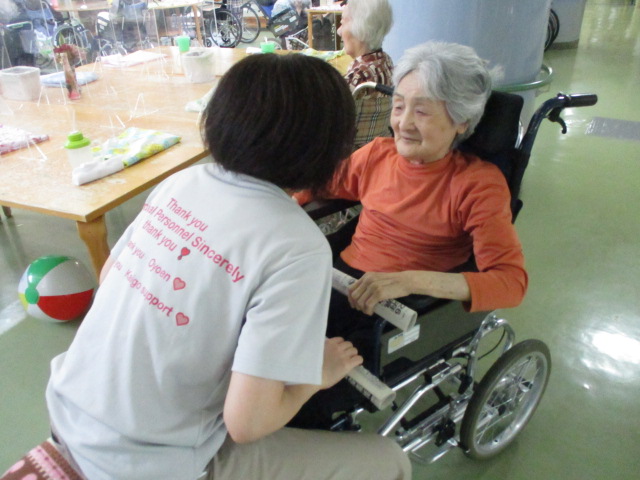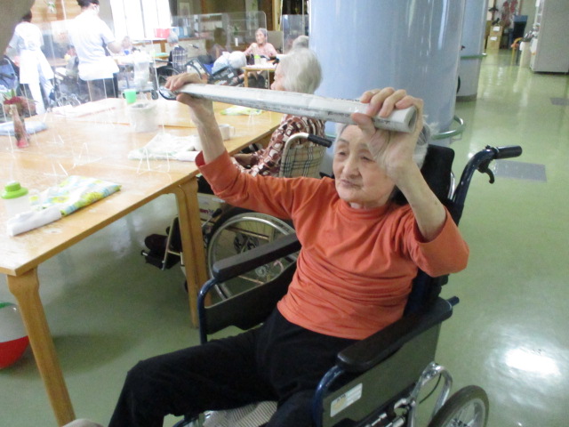 こちらのお客様↓↑昼食前に楽しくリハビリを行っておりました! 腕を上げたりと、肘・腕の可動域訓練をされておられました!しっかり腕を上げられていますね!その調子です!!
