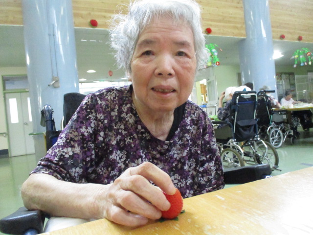 Y様は「あらかわいい☆」と話されコロコロ転がしてから、あむっと一口!「甘いイチゴだわ」と満足そうでした(^^v)