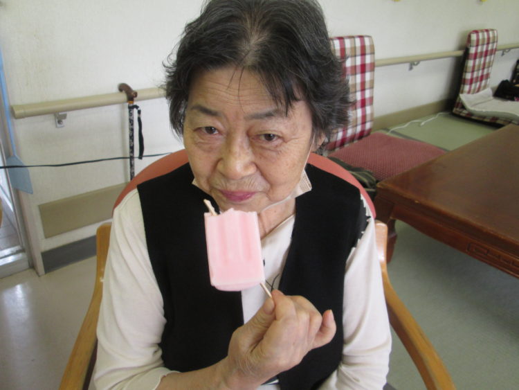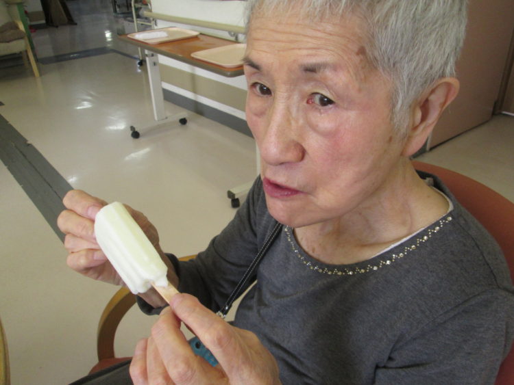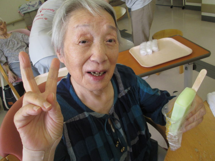 久しぶりのアイスで嬉しいようでカメラを向けるとすぐピース(^^♪