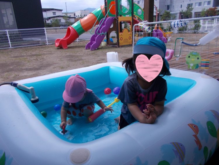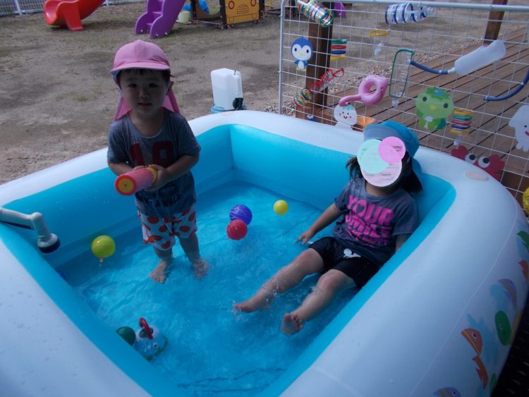 さて、山崎保育園の今日の活動は水遊びでした。