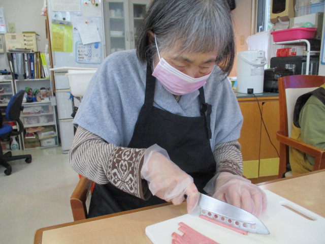 お客様は取り組んでいらっしゃるのは、キュウリとハムのカット。