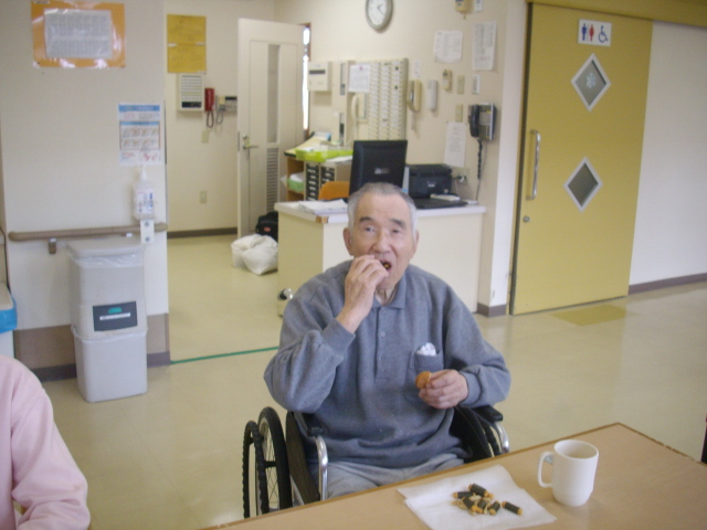 こちらの写真はお茶会の様子です。とっても美味しそうに食べてますね。