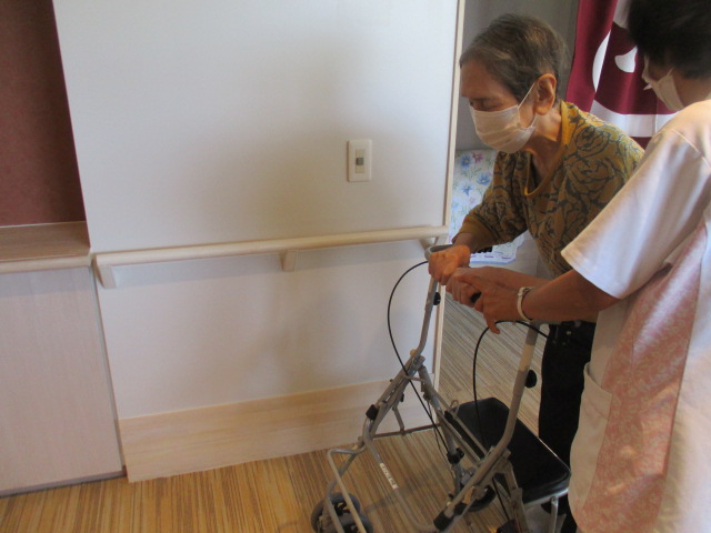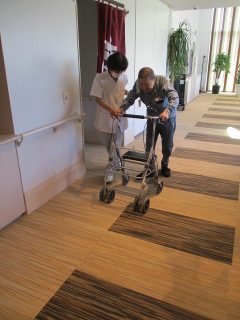 一生懸命にリハビリを頑張るH様。職員が寄り添い、怪我や事故が起きないよう、無事リハビリを行うことが出来ました。無事歩けるようになることを願っています。
