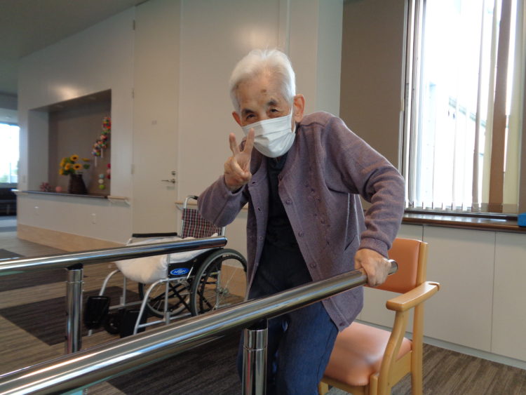 立ち上がり訓練です。N.S.さんもリハビリを楽しみにしています。頑張って下さい!