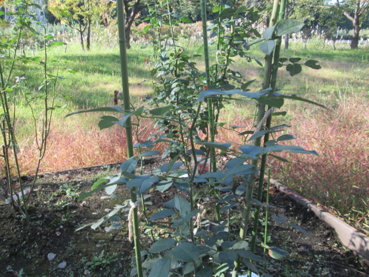 そして今日の薔薇園の様子です。すっかり秋らしく花びらもなくなっておりました。