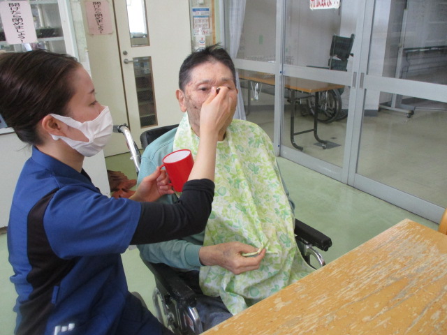 K様はちょうどK介護士に水分を頂いていました^^