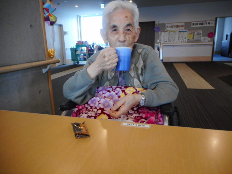 飲みながらご家族様が届けてくださったお菓子を食べ一時の