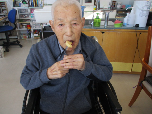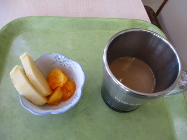 ブログをご覧の皆様こんにちは。今日は秋晴れ、気持ちがいいですね。リンゴの収穫もだいぶ終盤に差し掛かってきましたね。今日は洋服の日ですね(笑)衣替えを行なうには良い日かもしれませんね。さて、今日は午前のティータイムに柿、リンゴを提供しました。柿は特に完熟しており、甘さが引き立っておりました。皆様自然と笑顔がこぼれておりました。旬のものはやっぱり味わい深いですね。