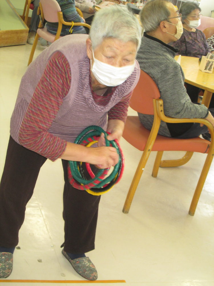 午後からは曜日別対抗ゲームレクにて輪投げを行いました❕