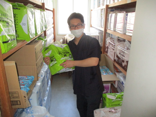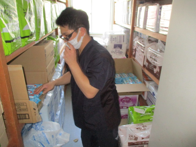 今日はお客様の使用する備品の整理をしていたK介護士の様子を載せたいと思います。