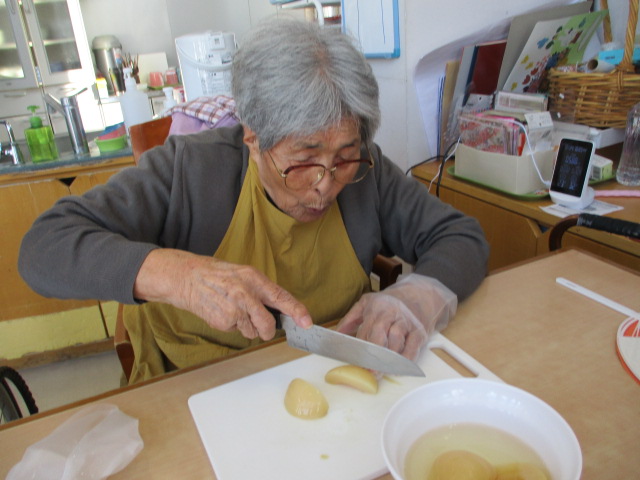 午前中作ったケーキと、ジュース、お菓子を召し上がられ、