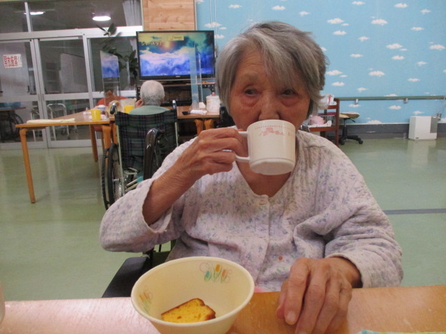 皆様いい表情ですね(^▽^)/「おいしいね~」とのお声もたくさんいただきました😋ほっと一息、皆さまの笑顔が見られたおやつタイムとなりました👍