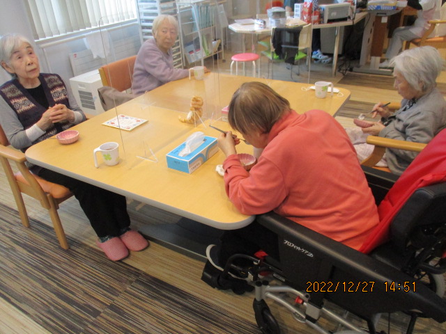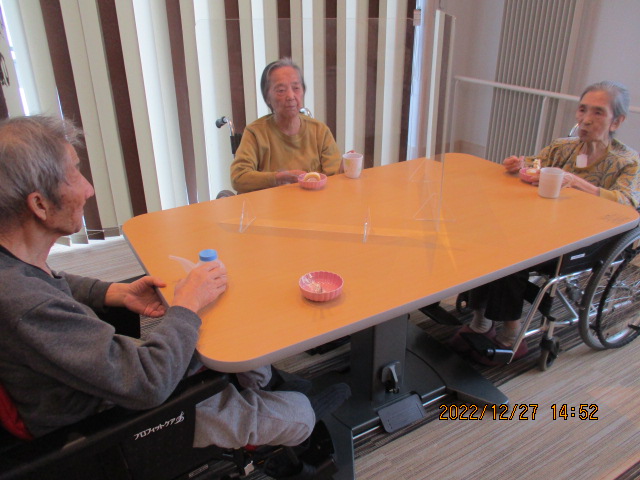 ロールケーキをみんなで食べ、「これ、美味しーー!」と皆様大変大喜びでした。