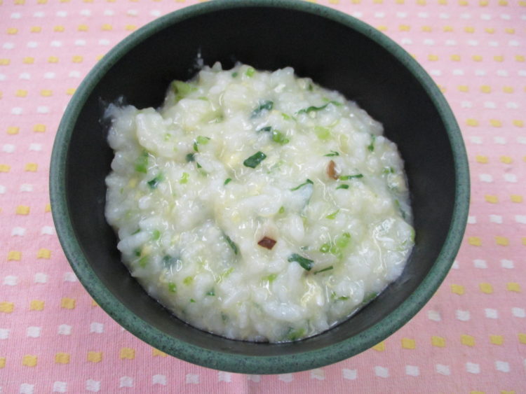 七草粥、わらびと焼き豆腐のみそ汁、赤魚の生姜醤油焼き、春雨とれんこんのソテー、舞茸の天ぷら、オクラと菊のおろし和え、杏しそ巻
