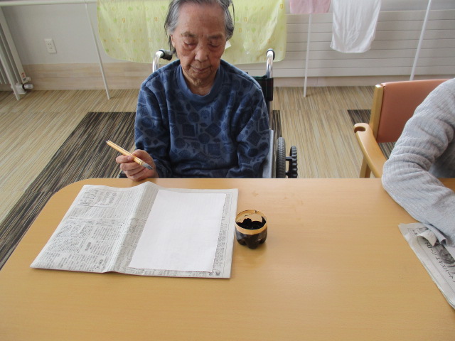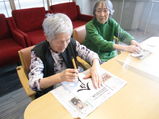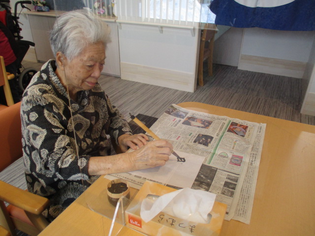 本日は新年一発目の行事、書初め大会とおはぎ作りを行いました。