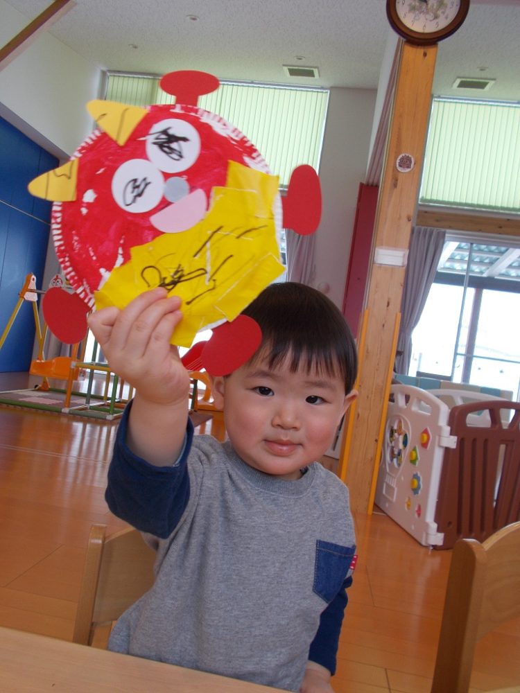 ぞう・うさぎ組のお兄さんお姉さんは、かっこいいかわいいおにのお面を完成させました^^