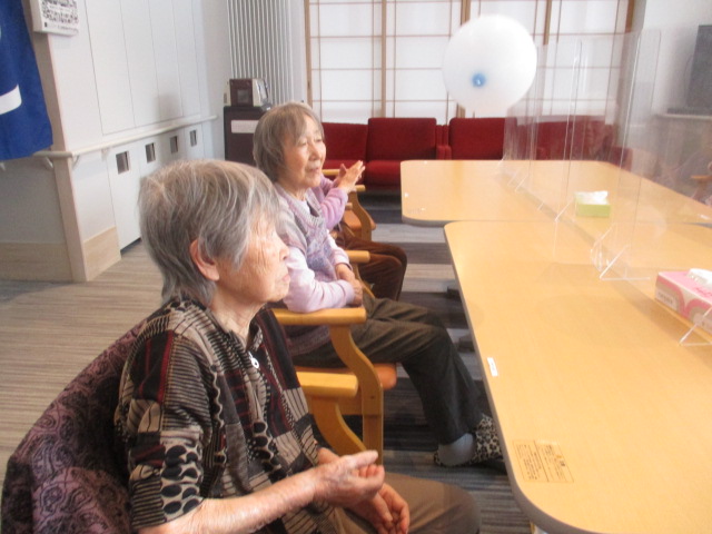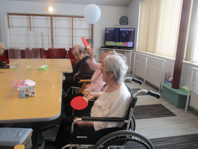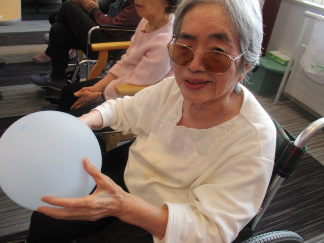 本日ご紹介する内容は、レク活動で風船バレーを行っている所です。