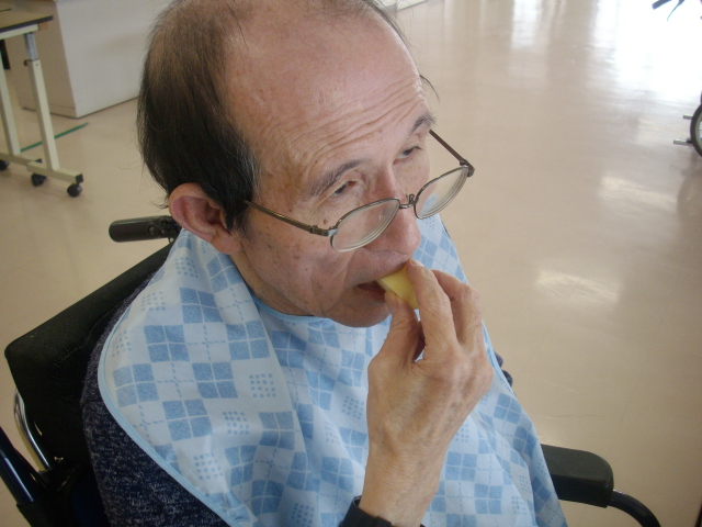 久しぶりのリンゴを食べた利用者様は「美味しい」と口をそろえて話されておりました。Y様は少しずつリンゴを食べながら水分を摂って過ごされていました。リンゴ以外にも食べさせたいですね。