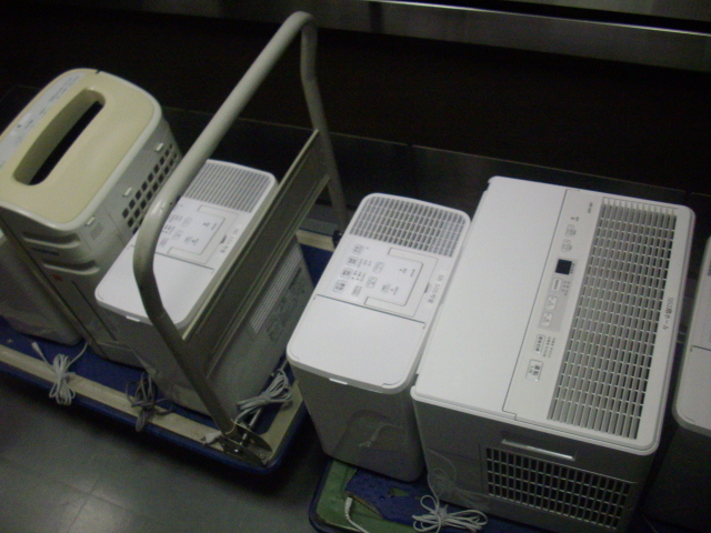 2F、3F、4Fの廊下と各居室に設置した加湿器を運んでまとめています。冬季は毎日お世話になった加湿器…次の冬まで長いお休みして、寒くなったらまた頑張ってもらいましょう。
