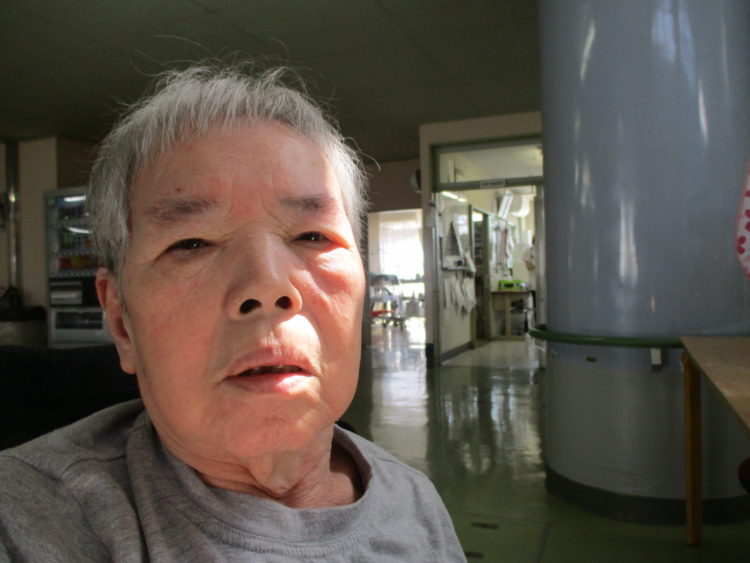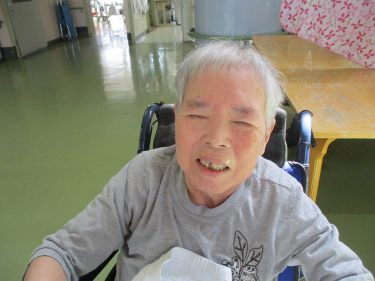 入浴前のY様、心なしかヘアーカットが終わってウキウキしている様子。