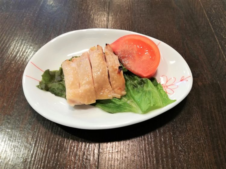 ご飯、さもだしのみそ汁、鶏肉の生姜はちみつ焼き、カリフラワーのカレー炒め、春菊の白和え、かつおたくあん漬け