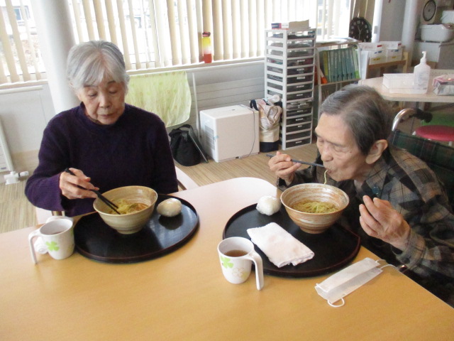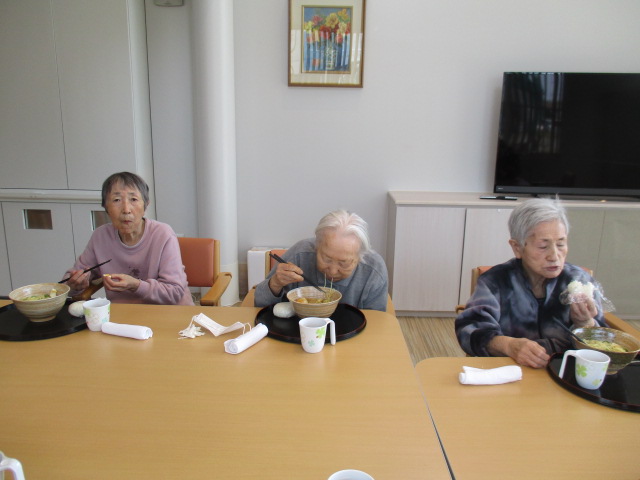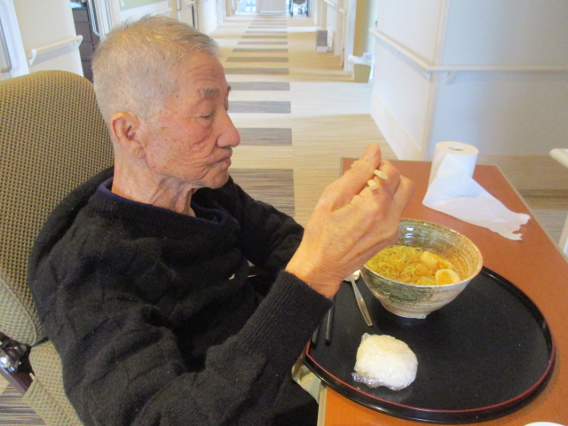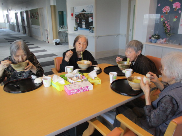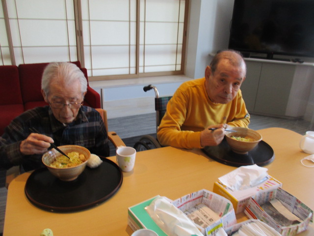 今日の昼食はラーメンですよ。と声掛けをすると「わー楽しみだー」「早く食べてぇな」等のお声が聞かれておりました。