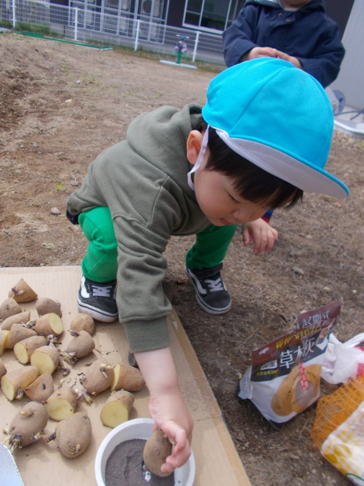 今日は園庭の畑に、じゃがいもを植えました!