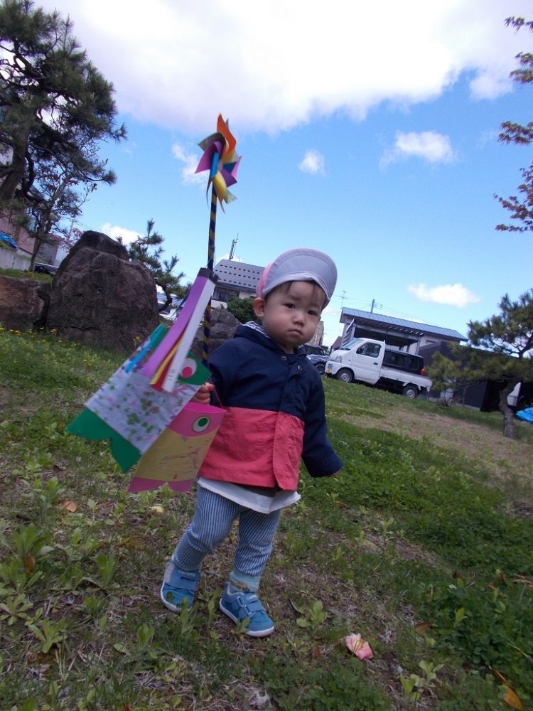 こいのぼりを持って走ったりジャンプしたり…とっても楽しそうな子ども達でした♪