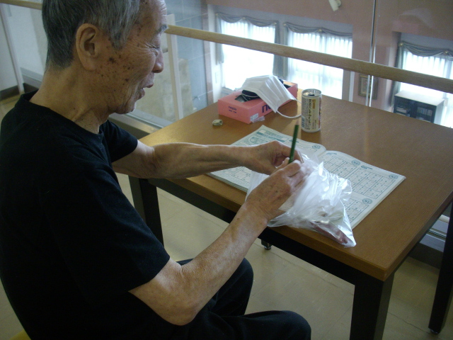 パズルや間違い探し等の脳トレを行うS様など
