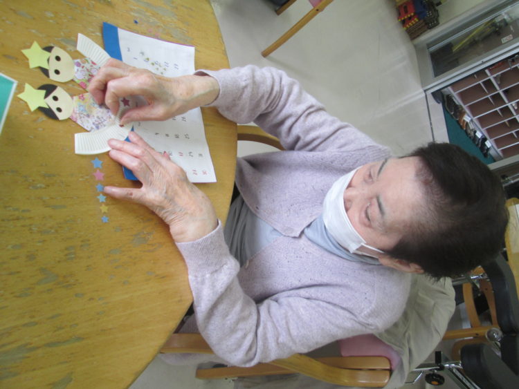 七夕のカレンダーの為、織姫と彦星に顔を書いたり…